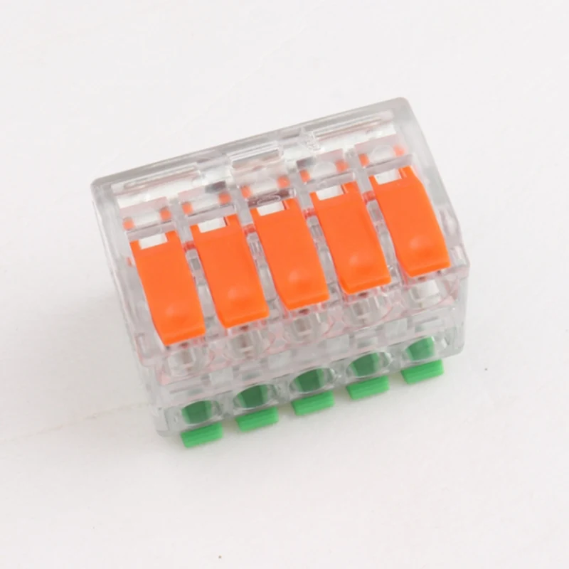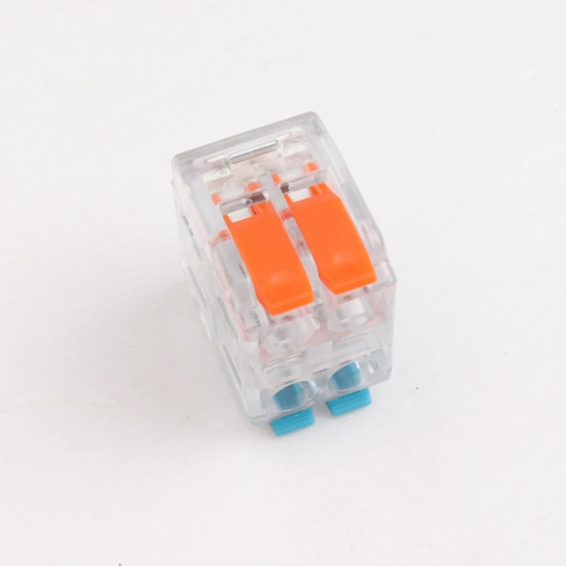 2P 3P 4P 5P Bi Maila Splicing Wire Konektore azkarrak geruza bikoitzak dira eta zirkuitu-konexio bereiziak dituzte espazio txikien beharrei erantzuteko eta elkarrekin konektatu ezin diren zirkuitu-konexio anitzeko. Heldulekua duen egiturak hariak desegiteko eta berriro konektatzeko errazten du.