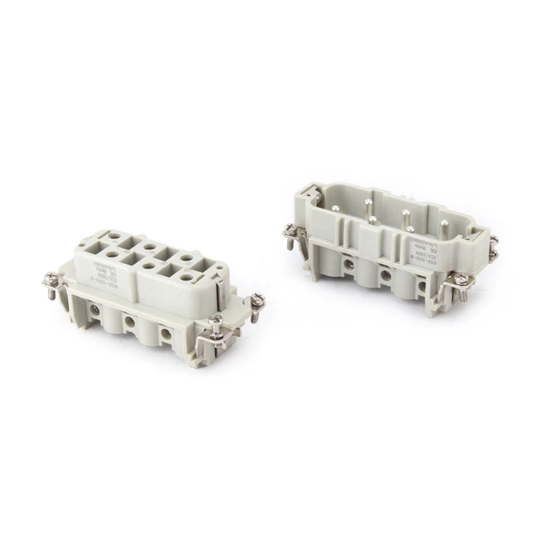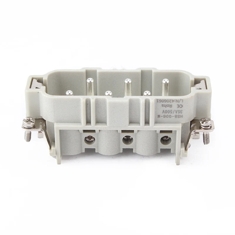 HSB-006-M HSB Heavy Duty konektoreak 35A egungo .35A 6 Pin Txertatu Heavy Duty Konektoreak 6 pin edo 12 pin bikoitzak ditu hariekin harremanetan jartzeko. Lan-baldintza desberdinetarako eskaintzen da, eta industria automatikoetan eta makinen kable-konexio motatan erabiltzen da.